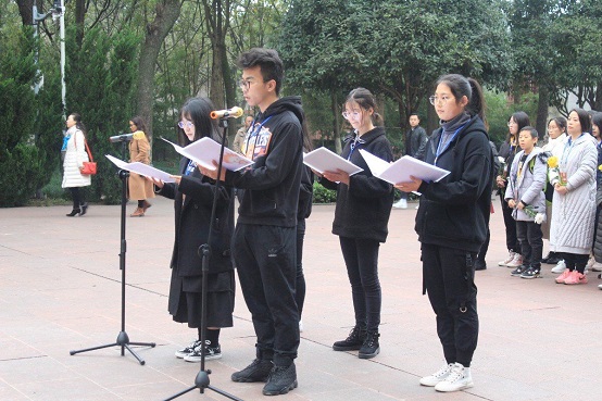 志愿者为我们讲述的江姐江竹筠的感人事迹也深深地打动了在场的每一位志愿者。志愿者们的朗诵声也饱含志愿者对英烈的敬仰之情。怀揣着对英烈的尊敬,志愿者们将手中的花朵献给歌乐山烈士陵园的各位革命先烈。时间久了,花会凋谢,但他们的事迹会在历史的画卷中留下浓墨重彩的一笔。