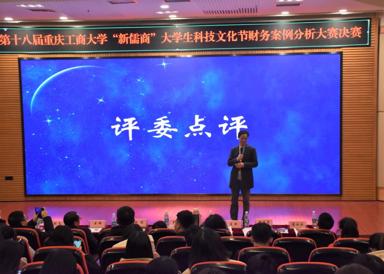 最后,评委钟廷勇老师对本次大赛进行了点评,六组参赛小组各有风采,将“新儒商”风采展现的淋漓尽致,也指出了同学们的不足,希望同学们继续进步;同时提出同学们一定适应大数据背景下的学习方式,变被动为主动,要结合专业进行调查研究,理论结合实际,努力将自己变得更加优秀,以适应国家、行业、企业的发展变化。