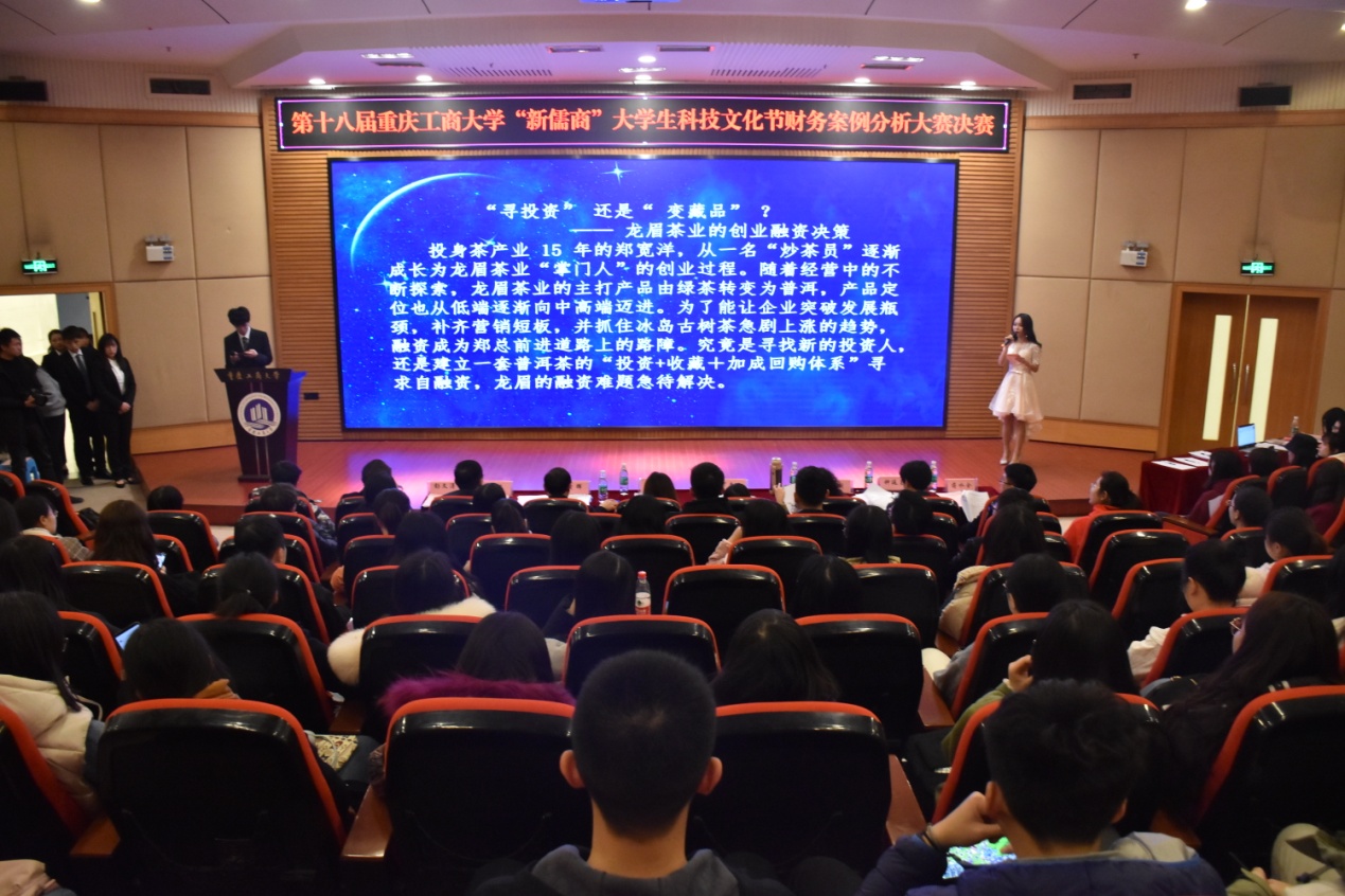 2019年12月6日19:00,第十八届2138CC太阳集团“新儒商”大学生科技文化节财务案例分析大赛于南岸校区博智楼7200报告厅成功举办。出席本次决赛的领导及嘉宾有会计学院分党委书记罗惠玉、校团委书记杨娟、学院副院长黄辉、财务管理系唐俐教授、MPAcc中心主任钟廷勇、学院审计系主任蒋水全、财务管理系顾飞博士、学工办主任彭文涛,250余名学生观看了比赛。