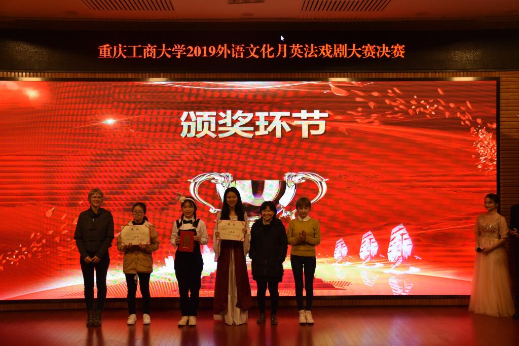 戏剧表演到此结束,在场评委对本次参赛的戏剧表演进行点评,工作人员统分之后最终确定获奖剧组名单:一等奖:《大坏狐狸》;二等奖:《巴黎圣母院》、《灰姑娘》,三等奖:《傲慢与偏见》、《仲夏夜之梦》、《爱丽丝梦游仙境》。由评委老师为获奖剧组颁奖,英法戏剧决赛至此圆满结束。