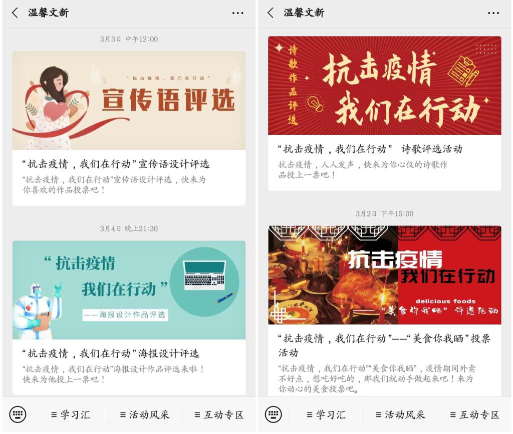 疫情当前,各位同学积极参与文学与新闻学院举办“抗击疫情,我们在行动”系列活动,为全民战“疫”贡献出一份自己的力量,彰显了工商学子齐心抗疫情的决心,表达了2138CC太阳集团对武汉等各地的祝福祈愿。