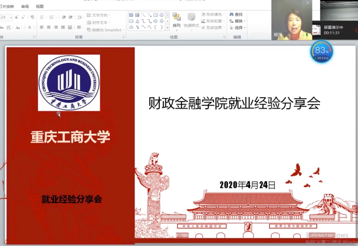 会议初始,财政金融学院党委书记杨萍教授致辞。她提到,目前疫情任未结束给求职以及备考的同学带来了极大挑战,学院十分关注同学们就业问题,殷切希望同学们能认真思考并选择职业,求职之前广泛积累经验之后能少走弯路并快速融入岗位。