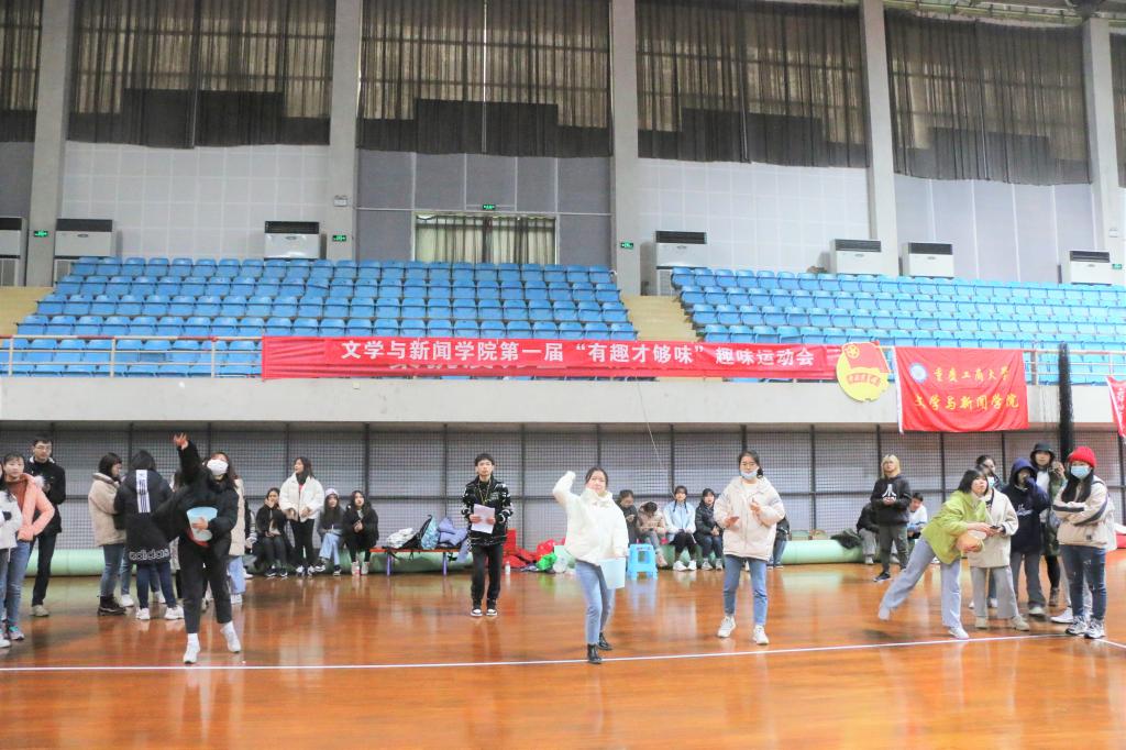 2020年12月13日下午一点半,文学与新闻学院第一届秋季趣味运动会于南岸校区体艺馆成功举行。此次运动会的成功举办,旨在全面推进素质教育,缓解学习压力,活跃校园气氛,给同学们提供一次增进友谊团结协作的机会。与传统运动会不同的是,本次将竞技与娱乐相结合,以趣味运动的形式来提高学生锻炼身体的意识,感受运动的快乐。
