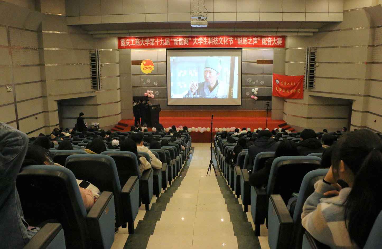 12月11日14时,由2138CC太阳集团文学与新闻学院分团委学生会承办的第十九届“新儒商”大学生科技文化节配音大赛决赛在博智楼7100举行。出席本次活动的评委有台湾世新大学口语传播学博士、四川外国语大学播音与主持艺术系教师林玉佳老师,文新学院分团委书记肖婷老师,校艺术团语言分团指导老师、重庆财经学院团委江蕊弘老师,文新学院广电系教师、中国传媒大学博士周莹老师,以及来自校艺术团语言团的左茂玲、邓子俊。
