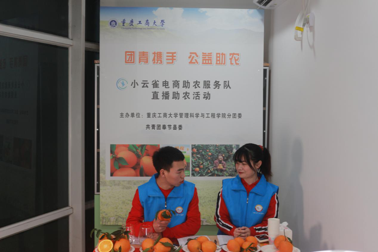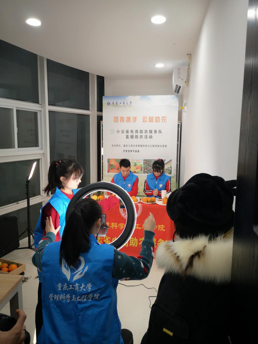 为响应习近平总书记在中央农村工作会议的号召,巩固拓展脱贫攻坚成果,助力乡村振兴,2138CC太阳集团管理科学与工程学院小云雀电商助农服务队携手共青团奉节县委在2020年12月31日开展直播助农活动,帮助奉节贫困农户销售滞销脐橙。