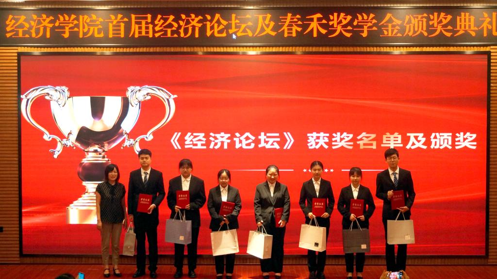 论坛伊始,全体师生观看了经济论坛宣讲视频,视频展现了此次论坛优秀指导教师和获奖同学的风采。接下来,会议第一项议程,经济学院分党委副书记王燕宣布了获奖名单。其中左晓琪等七位同学获得了一等奖,丁方伟等十二名同学获得了二等奖,周泽端等十八名同学获得了三等奖;第二项议程,李自维书记、王燕副书记、黄潇副院长分别为一等奖、二等奖、三等奖获奖代表颁发了获奖证书;第三项议程经济学院分党委副书记王燕宣读此次论坛优秀指导教师名单,其中唐路元、杨海丽、张弛三位老师获得了优秀指导教师荣誉称号;第四项议程李自维书记为获奖指导教师代表颁发了荣誉证书。