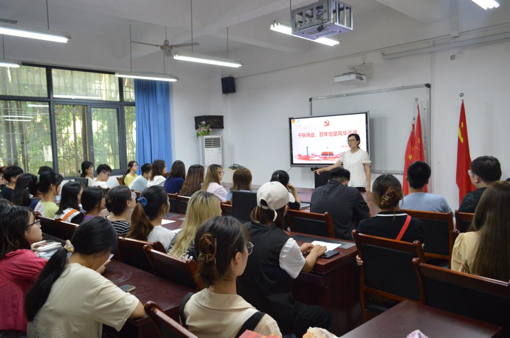 兰丽娟老师首先以问答的形式引导同学们理解和阐释伟大建党精神,号召同学们继续弘扬党的光荣传统、赓续红色血脉。接着从习近平总书记“七一”重要讲话的意义、以史为鉴、开创未来要牢牢把握的“九个必须”等方面进行详细阐释。最后带领同学们一起重温习近平总书记对青年的寄语,勉励同学们加强责任感和使命感,增强做中国人的志气、骨气、底气,不负时代,不负韶华,不负党和人民的殷切期望!