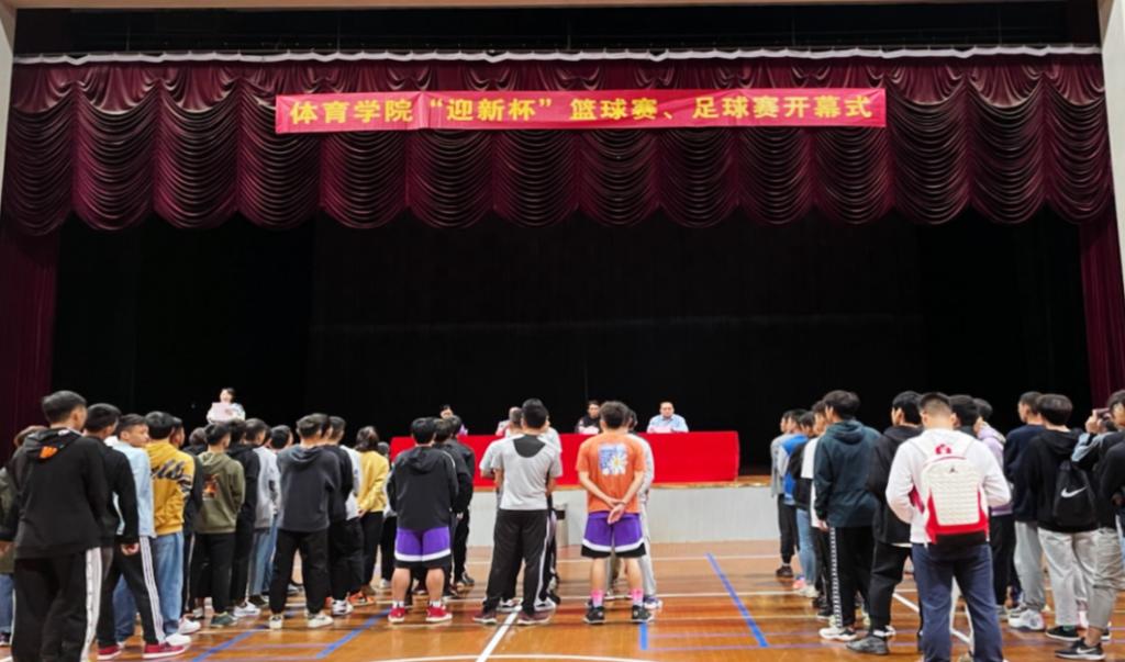 为丰富大学生的课余生活,提高大学生的综合素质,增强团队精神和集体凝聚力,展现大学生积极向上的风貌,10月15日,体育学院举办的2021年“迎新杯”篮球、足球赛在南岸校区体艺馆顺利开幕。体育学院党总支书记王竹青、院长范文杰、学工办副主任傅杨、辅导员刘有斌以及体育学院各参赛队球员代表、裁判员代表和各年级同学们出席开幕式。