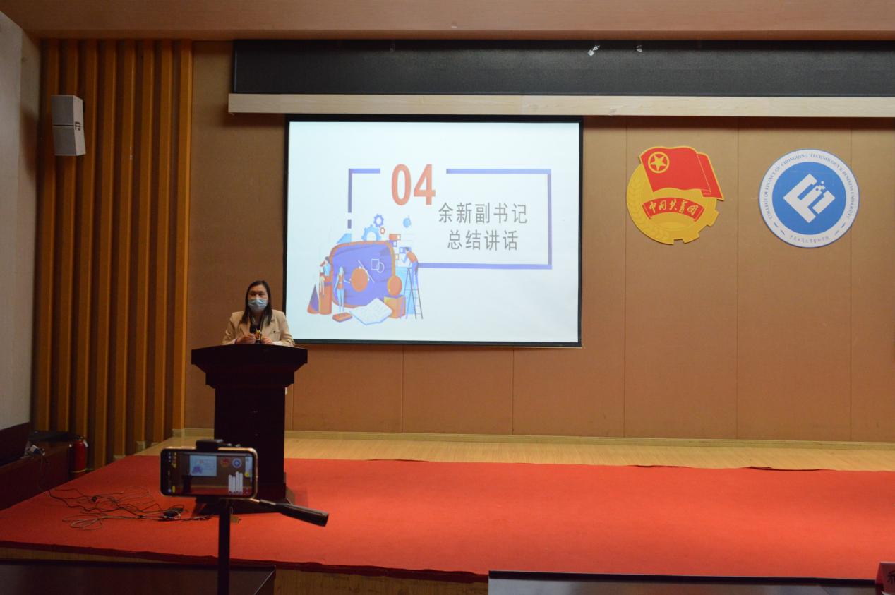 王兰介绍了学科竞赛的相关内容并呼吁同学们积极参与各类学科竞赛。蒋伟燕从赛事分类、举办时间、竞赛收获等方面介绍“创青春”比赛的特点,并从指导教师、成员的选择和选题等方面介绍了如何做参赛的前期准备。同时,她从创业计划书“产品与服务”“市场分析”“营销策略”“公司管理”“金融管理与融资”“风险与退出机制”六要素向同学们讲解创业计划书的撰写要求。提醒大家参赛时需直面困难,做好团队建设,同时应重视大赛要求及可行性、创新性相关方面问题。余新进行总结讲话,她向同学们呼吁了创新的重要性,强调创新已成为时代的主旋律,表示只要有想法,敢于挑战,敢于创新,成功迈进,同学们便能够享受在学术殿堂里遨游的无限乐趣。
