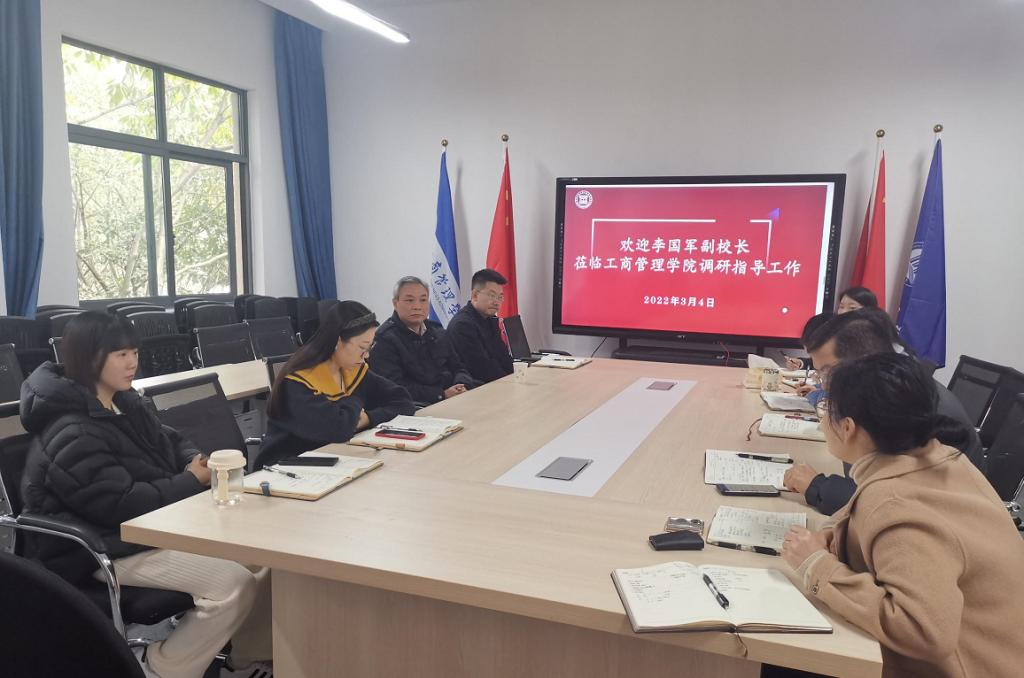 3月4日,副校长李国军莅临工商管理学院调研指导工作,学院分党委书记、副院长彭勇,分党委副书记程亚及全体辅导员参加了调研座谈。