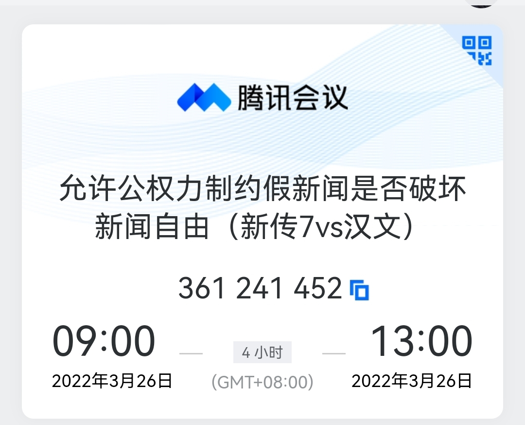 本次比赛分为上午和下午,辩手分别来自20级和21级。上午比赛有21级新传一班、五班、七班、汉文班;20级广电班和新闻班。双方围绕“允许公权力制约假新闻是否破坏新闻自由”和“人设利弊”进行辩论。在第一个辩题中,21级汉文班首先解释了公权力、假新闻、新闻自由的含义。以“假新闻与新闻事实背道而驰”和“假新闻破坏了受众知情权,消解了新闻本身的价值意义”为论证点。得出“公共权力制约假新闻不是破坏新闻自由”。赢得比赛。其次,身为20 级唯一一组辩手,更是展现了学长、学姐的风采。新闻班以大家熟知的日本工作强度和明星马嘉祺高考失利为例,用“立人设会给行为主体造成心理压力,让他们感到心累。”和“人设崩塌会给主体带来反噬——名誉扫地、自尊心受损等,不利于长期的人际交往”为论点。得出“立人设弊大于利”。双方辩手全力以赴,旁征博引,将己方观点表达清晰,线上气氛可谓是如火如荼。
