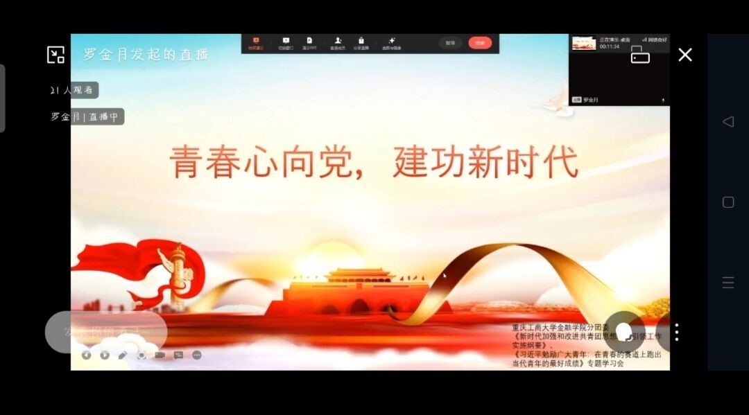 在五四青年节来临之际,为凝聚青春力量,强化团员青年的政治引领和使命担当,5月4日,金融学院在企业微信举行“青春心向党,建功新时代”主题教育活动。金融学院分团委学生骨干参加了本次活动。