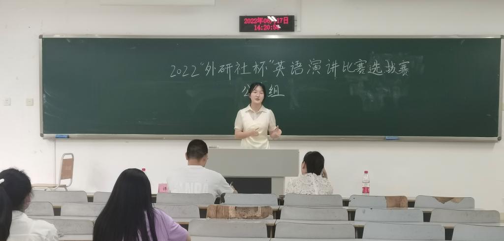 6月17日下午,2022年“外研社杯”英语演讲比赛校内选拔赛在第七教学楼举行。外国语学院教师曹丽娟、雷定坤、朱红梅、张林玲、庞海才、王佳、郭薇、王世文、王利平及张冰老师分别担任各赛场评委。