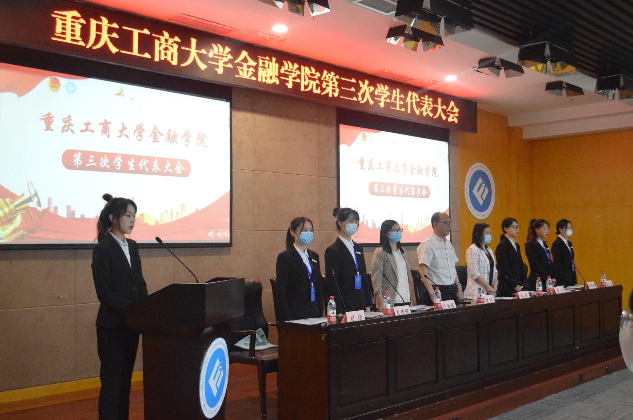 6月12日上午,金融学院第三次学生代表大会在南岸校区新图书馆多功能报告厅举行。金融学院党委书记、副院长王建明,金融学院党委副书记、纪委书记余新,金融学院学生工作办公室主任、分团委书记兰丽娟、校学生会主席团成员薛洁以及82名学生代表出席本次会议。