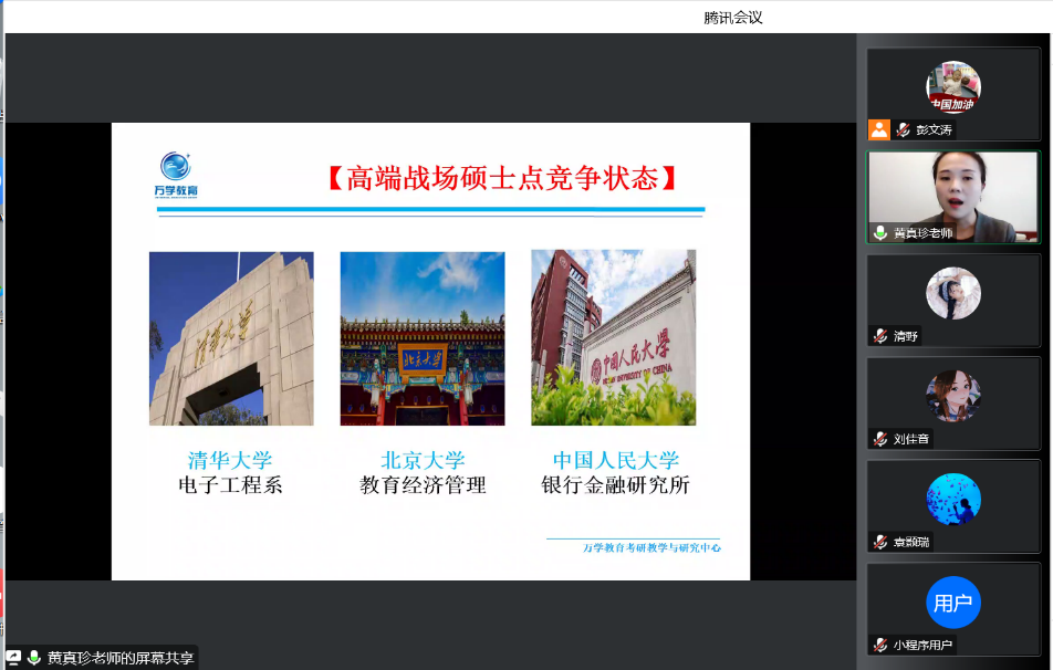 11月11日下午,会计学院联合万学教育通过线上方式顺利举办“名校硕士养成记-20级学生考研辅导讲座”。本次讲座由万学教育黄真珍老师主讲,由会计学院学工办主任、分团委书记彭文涛主持。