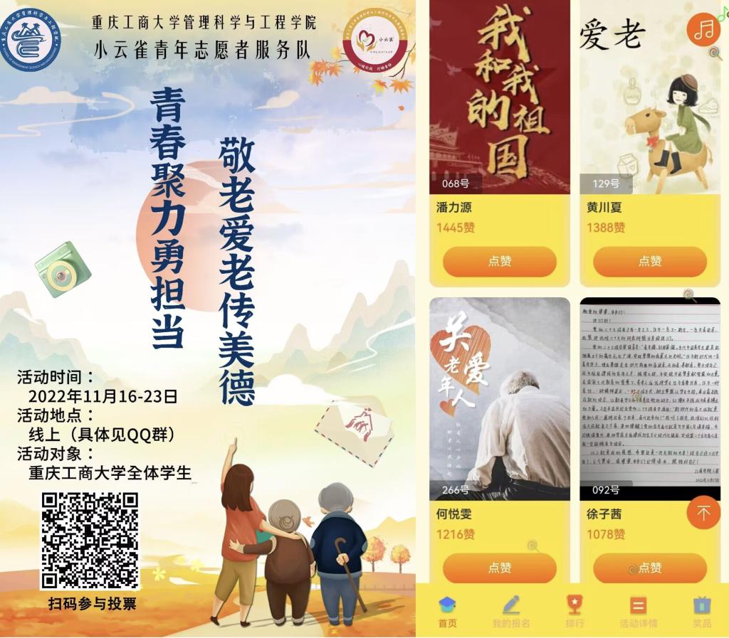 为弘扬中华民族乐于助人、敬老爱老的优良传统美德,提高志愿者们的志愿服务的积极性。11月15日至11月25日,管理科学与工程学院“小云雀”青年志愿者服务队与福源南山养老院共同顺利开展以“青春聚力勇担当,敬老爱老传美德”为主题的线上敬老活动。