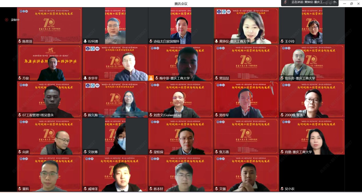 11月26日,正值我校建校70周年暨管理科学与工程学院工程管理专业办学20周年之际,在我校校友办的指导下,由管理科学与工程学院主办、工程管理系和BIM协会承办的“新时代的工程管理创新与发展”为主题的第四届工程管理论坛通过腾讯会议平台线上举行。