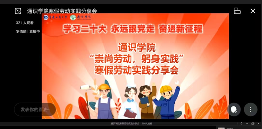 为深入学习宣传贯彻党的二十大精神,落实习近平总书记关于开展劳动教育和开展学雷锋活动的重要指示,充分发挥劳动实践的育人作用,激励广大通识学子积极参与劳动实践,通识学院“蒲公英”青年志愿者服务队于3月10日顺利举办“崇尚劳动,躬身实践”劳动实践线上分享会。学院“蒲公英”青年志愿者服务队指导老师咸坤泽参与了本次分享会。