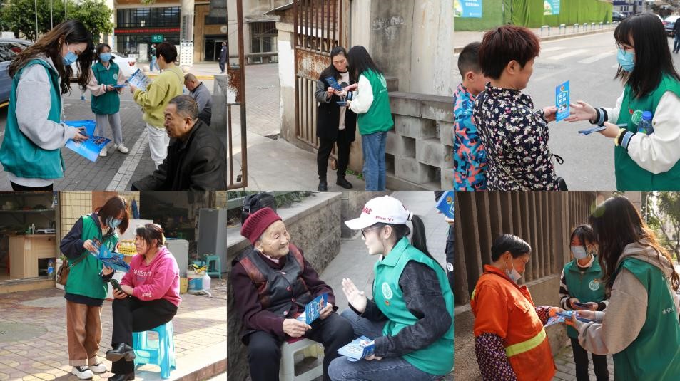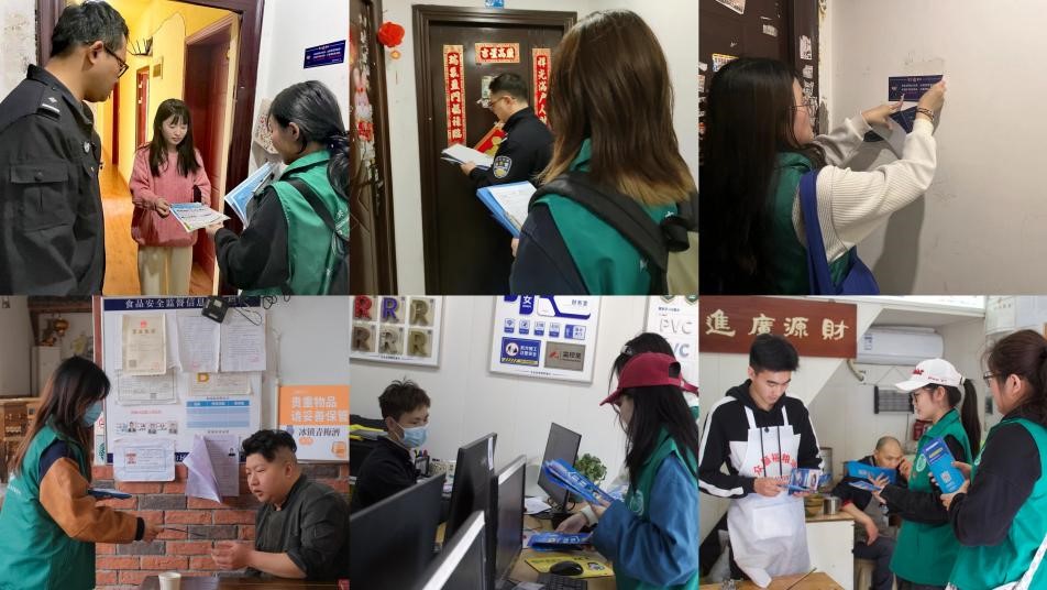 活动开始前,花园村派出所陈意所长和华新街派出所杨仕奇所长结合实际案例,向志愿者们讲述受骗群体特征、常见诈骗手段、反诈防骗措施以及入户宣传话术,帮助志愿者们初步掌握反诈知识和宣传方法技巧。活动开始后,志愿者们分成多个小组前往对应社区,与片区民警一起开展入户宣传工作。志愿者们走进居民楼中,发放反诈防骗宣传单,张贴反诈骗宣传标语,面对面宣传普及反诈防骗知识,逐户向社区群众系统讲解各类与居民日常生活密切相关的安全防范知识;志愿者们走进商户店里,以具体形象的案例进行解说演示,提醒商家要提高警惕,谨防诈骗;志愿者们走进写字楼里,为辖区内企业工作人员普及反诈防骗知识,讲解电信诈骗案例,并告知企业工作人员尤其要警惕涉及企业层面的电信诈骗;志愿者们走进周边路人,提醒反诈知识薄弱的老年人不要轻信陌生人电话和短信,亲切、细心地讲解反诈防骗知识。