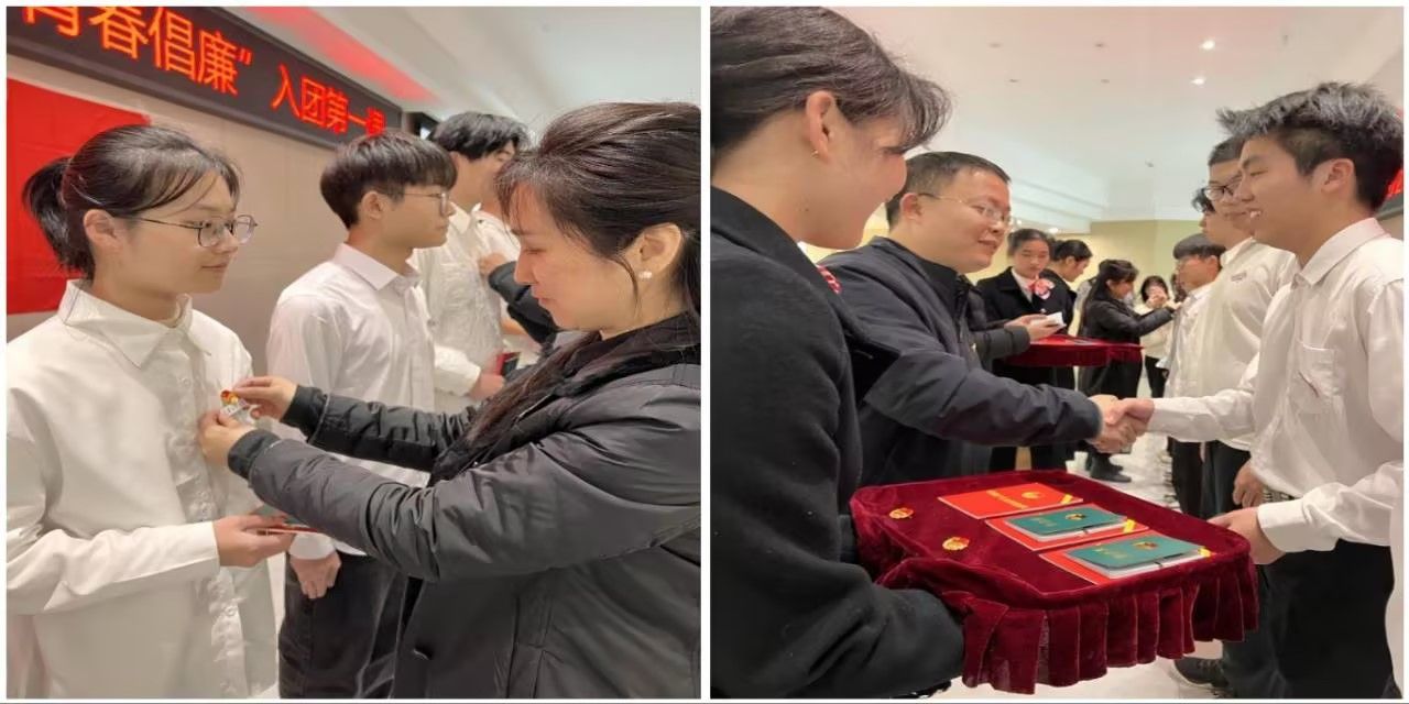 入团仪式在庄严的国歌声中拉开序幕。吴佑波宣读新团员名单,向新团员表示热烈祝贺。与会领导为新团员们颁发团员证、团章,佩戴团徽。
