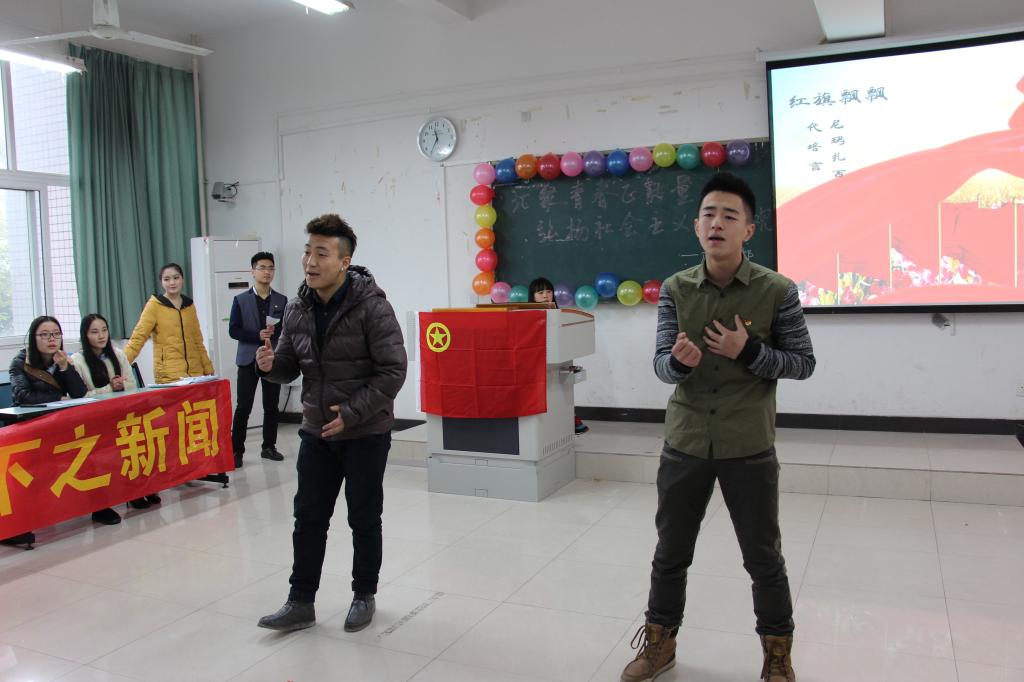 随着曲调活泼向上、歌词紧扣社会主义核心价值观的改编版《小苹果》舞蹈,团日活动在轻松愉悦的气氛中拉开序幕。主持人用PPT演示和讲解了社会核心价值观的内容。结合专业特色原创录制的生活短片,用新颖的方式生动形象地诠释了公正、法治、爱国、敬业、诚信、友善等社会主义核心价值观的深刻内涵,使所有观众对“二十四字”社会主义核心价值观有了全面认识。接下来的诗朗诵《祖国颂》、歌曲《映山红》、葫芦丝演奏《竹林深处》、手语舞《爱因为在心中》、京剧《红梅赞》等节目竞相上演,形式各异,但全都紧扣主题,让大家对社会主义核心价值观的认识更加深刻。节目中还穿插着知识竞答、击鼓传花等游戏环节,现场气氛和谐而愉悦,让大家在娱乐中感受知识的魅力。而后,博雅十佳歌手冠亚军尼玛扎西、代培言激情合唱的《红旗飘飘》,昂扬向上,动人心弦,更将本次团日活动的气氛推向了高潮。最后,在一首气势磅礴的共青团团歌大合唱中,活动圆满落下帷幕。