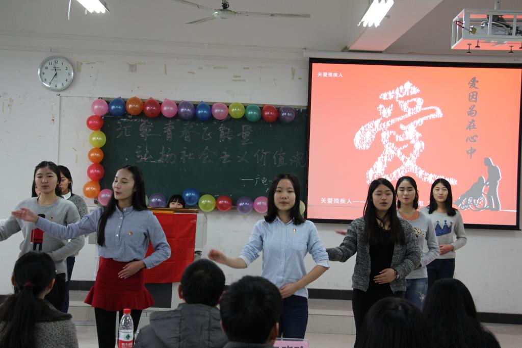 2014年12月12日下午2点,广电一支部代表通识学院在兰花湖片区广智楼20202开展了以“汇聚青春正能量 弘扬社会主义价值观”为主题的特色团日活动。本次团日活动邀请了通识学院院长兼党总支书记包晓玲、通识学院党总支副书记谢瑞军、通识学院分团委副书记周涛、辅导员梅艺,各学院学生会代表、通识学院分团委学生会各主席以及广电一支部全体同学参与了本次特色团日活动。