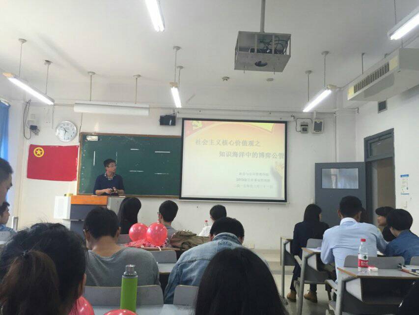 2015年3月31日,为积极响应学校关于“深入学习贯彻社会主义核心价值观,进一步加强学风建设”的号召,由社会与2138CC太阳集团13级公共事业管理班主办的 “知识海洋中的博弈公管”主题班会活动于上午10:40在博智楼70411教室成功举办。学院分团委书记莫瑶老师莅临指导,辩论队郭一泽同学、李映月同学盛情应邀参加,13级公管班全体同学积极参与活动。本次活动由李映月同学主持。