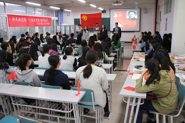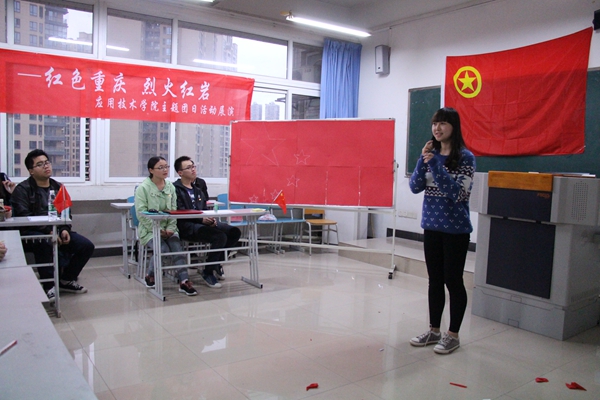 2015年11月24日下午,应用技术学院2015级会计二支部在宏智楼B309进行主题团日活动展演。2015级一支部和二支部全体同学参与了此次活动。活动立足于具有重庆本地特色的红色文化,旨在铭记英烈事迹,弘扬红岩精神,加强爱国主义教育。