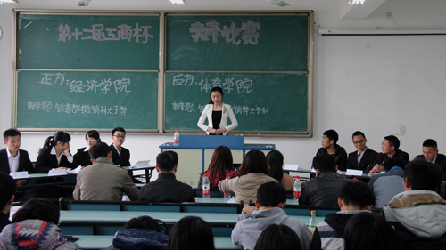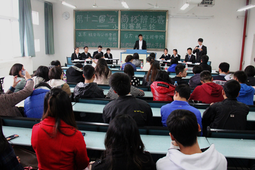 展辩论魅力,扬青春激情。11月29日下午14:00,由校团委主办的我校第十二届“工商杯”大学生辩论赛第三轮小组赛在兰花湖片区广智楼20401、20402等教室举行。来自我校16个学院的辩论队两两对阵,就“铁道部的撤销利大于弊or弊大于利”、“当今中国应该or不应该扩大自主招生规模”展开了激烈的辩论。