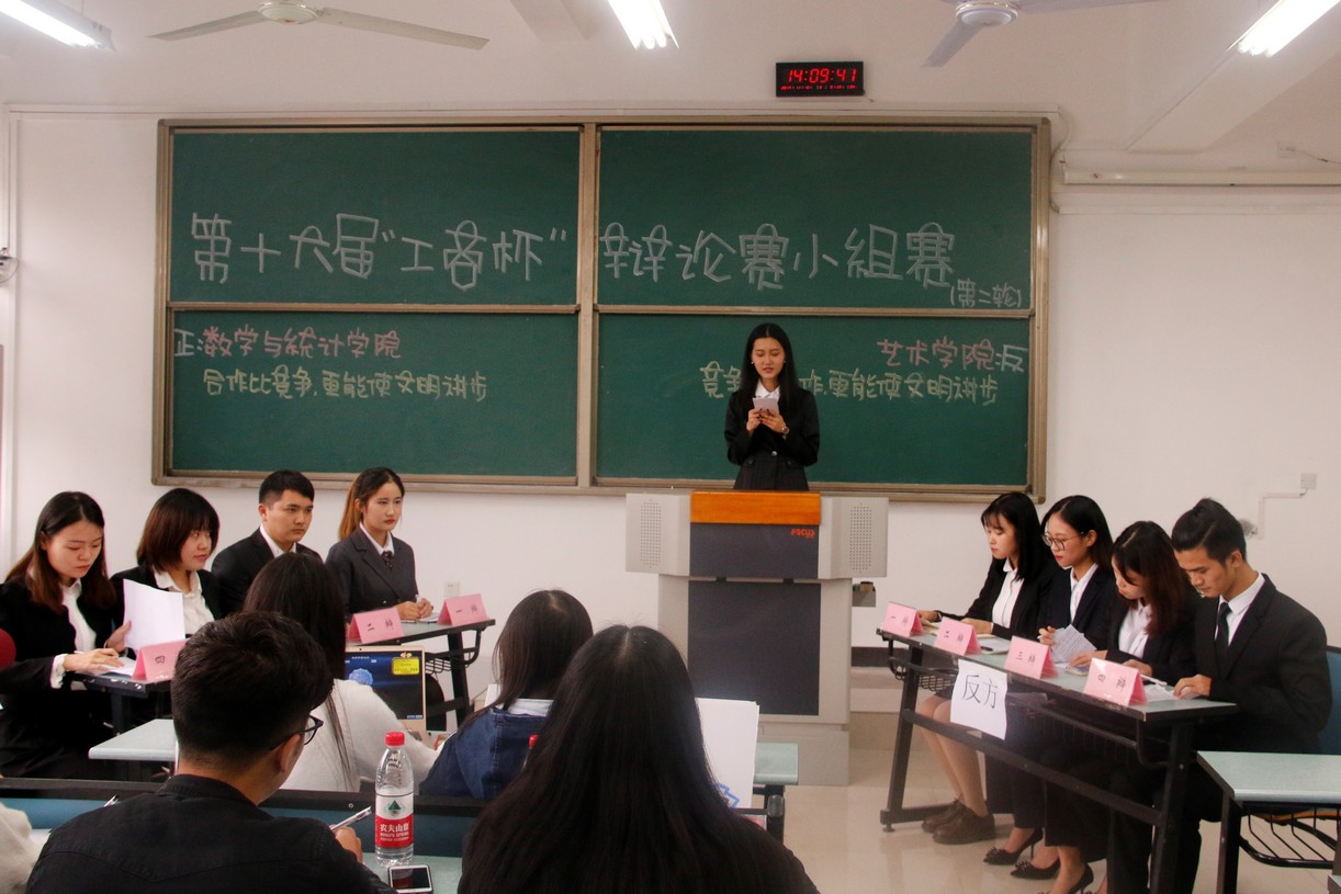 11月10日下午两点,第十六届“新儒商”科技文化节之“工商杯”辩论赛小组赛(第二轮)在兰花湖片区广智楼20401、20401、20414举行。由各学院组成的12支辩论队给观众们带来了一场精彩绝伦的“较量”。来自各学院的往届优秀辩手担任了本次比赛的评委。