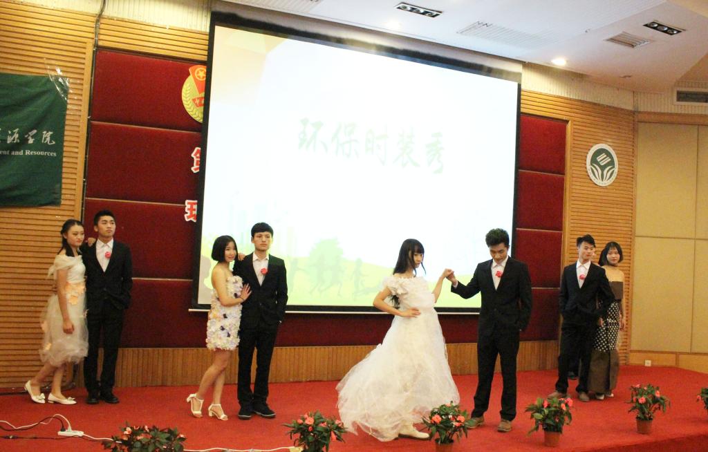 本次活动自10月上旬启动,历时一个多月,期间得到全校同学们的广泛关注,共计收到包含多媒体类、图片类、文字创意类、“变废为宝”制作类等43件参赛作品,经过层层筛选,最终有10件作品脱颖而出入围决赛。决赛现场,分党委王竹青书记致辞讲到,此次大赛在提升同学们环保意识、宣传校园环保理念、传播环保生活方式有着深远的意义,也坚信此次大赛能号召更多的人参与到环保行动,为建设美丽中国贡献出自己的力量。紧接着,各团队围绕环保主题依次展示他们的创意作品,激情洋溢的现场讲演与评委老师精彩又不失风趣的点评,引起现场阵阵喝彩,由环资学院环境科技协会自创自导的环保时装秀更是将比赛推向高潮。所有作品全部展示后,王院长对所有作品点评提到,此次大赛充分展示了我校学子的环保创新思维,她希望同学们能继续利用大学所学专业知识,将作品不断完善最终能形成创业产品。傅敏院长宣读获奖名单,并再次强调希望通过大赛,让低碳、绿色环保理念融入工作学习以及生活之中,环保建设,永远在路上。通过层层角逐,熊爽同学的《憩园》荣获一等奖,向天奎团队的《光棍小屋》、王芳芳同学的《环保时装》荣获二等奖,叶便达团队的《既要金山银山也要绿水青山》、罗鋆团队的《飘》、刘峥嵘同学的《多功能环保旅游杯》荣获三等奖,伍思同学的《大自然在说话》、杨秋月同学的《简约收纳盒》、谢寒梅同学的《流沙》、王恒艺团队的《鸟笼灯》荣获优秀奖。