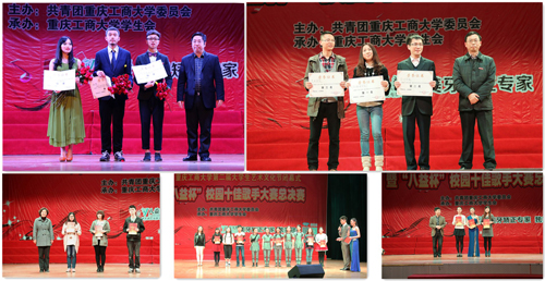 重庆知名音乐人柯添,国家一级演员、重庆市歌舞团著名歌唱家卢小玉,重庆音乐制作人、重庆市第四届青年歌手电视大奖赛流行演唱组金奖获得者蒋霖,重庆市两江艺术团青年歌手、重庆市第二届青年歌手大赛通俗组第一名获得者陈宏凯,重庆音乐家协会成员、米洛唯朵少儿音乐教学法创始人王凌应邀出席并担任决赛评委。现场还特别邀请由各学院推荐学生代表及重庆邮电大学、重庆交通大学、重庆理工大学、重庆第二师范学院选出的高校代表共同组成100人的大众评审团。