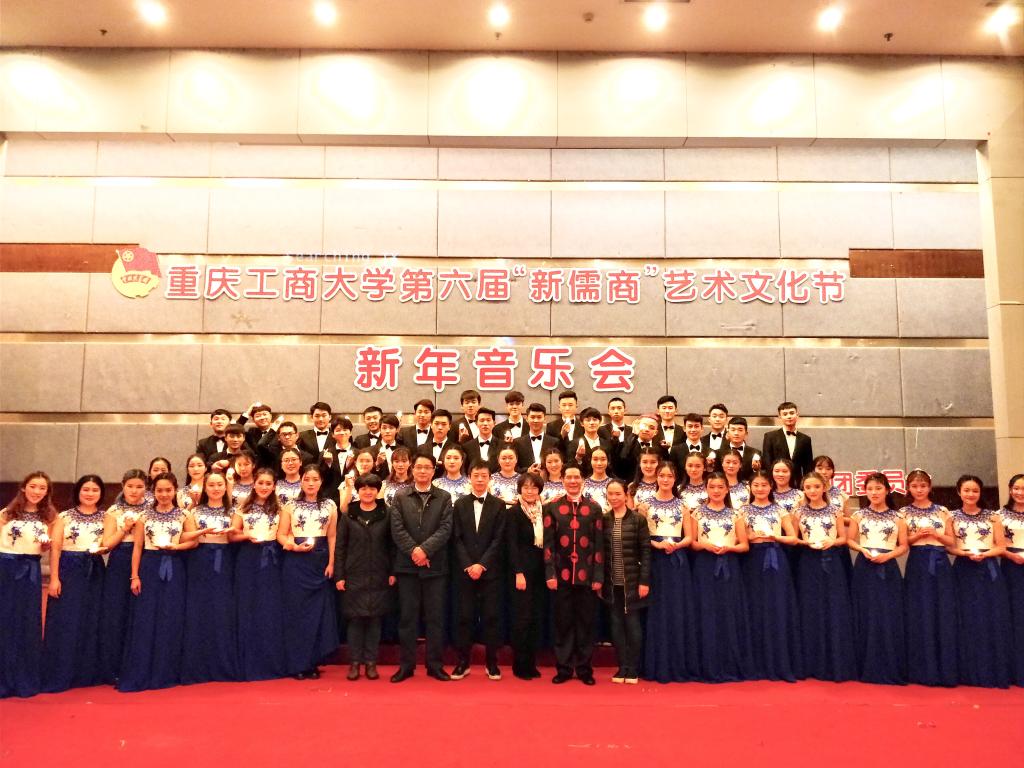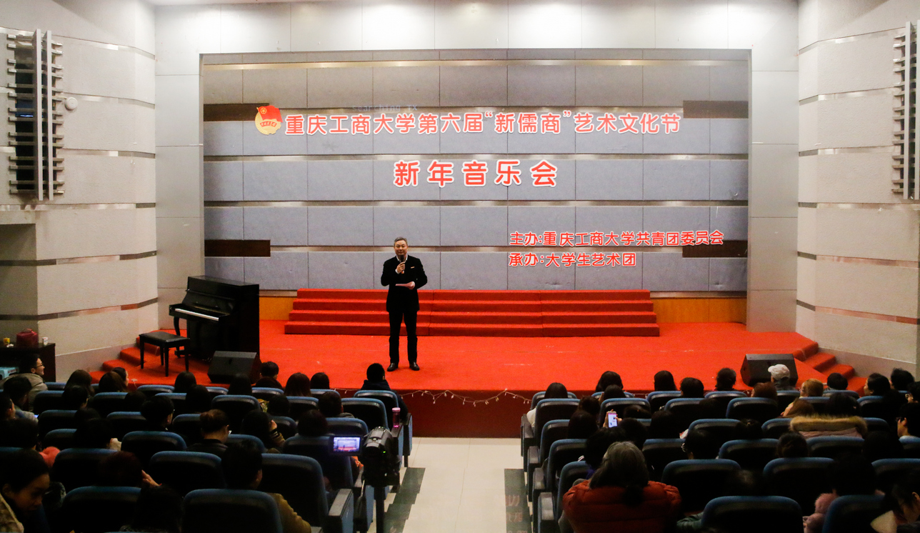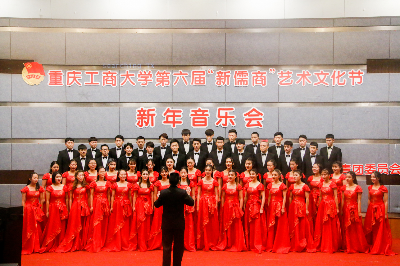 青春致敬经典,歌声迎接新年。12月21日19:00,由校团委主办、大学生艺术团承办的第六届“新儒商”艺术文化节之新年音乐会在南岸校区博智楼7100顺利举行。副校长李国军,党委组织部副部长林文军,学生处副处长李莉莎,校团委副书记杨娟、陆嘉出席活动,与全校500余名师生共同聆听了音乐会。音乐会由大学生艺术团合唱分团指导老师杜德彬担任现场指挥,陈奕老师担任钢琴伴奏。