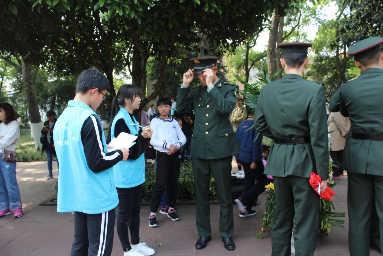 在这个特殊的节日里,庄严的红岩烈士广场上早早地便聚集了来缅怀先烈的组织和游客们,经济义协的志愿者们也井然有序地来到烈士碑前依次排列。伴随着主持人铿锵有力的气语,正式拉开扫墓仪式的帷幕。活动中,志愿者们讲述江姐、许云峰等革命先烈的英勇事迹,为烈士们朗诵诗歌,并在烈士碑前庄严宣誓,集体默哀,这些无不都坚定了志愿者们感恩先烈、感恩时代的爱国情怀。祭奠结束后,志愿者们对陵园里的人们进行了采访,了解到这种对先烈的缅怀之情始终存在于大家的心中,每个人都铭记着历史,感怀着祖国烈士,并以他们为傲。活动最后,志愿者们一起参观了红岩魂陈列馆,更真切地感受到了先烈的英勇无畏。