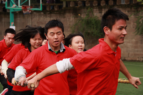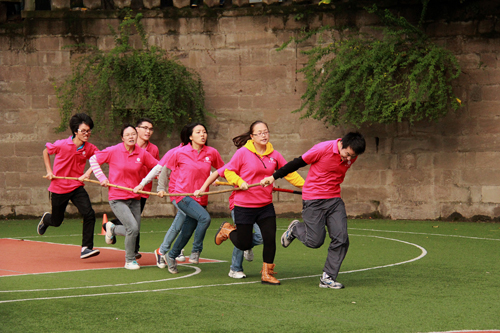 开幕式后,“健康校园杯”趣味运动会正式拉开帷幕。趣味运动会由鹊桥会、小腿勾棒跳、同心协力、默契我最大等7个集体项目和“反应我最快”等现场互动项目组成。经过近四个小时的比赛,体育学院代表队荣获一等奖,旅游与国土资源学院、艺术学院代表队获得二等奖,经济学院、法学院、管理学院代表队获得三等奖。