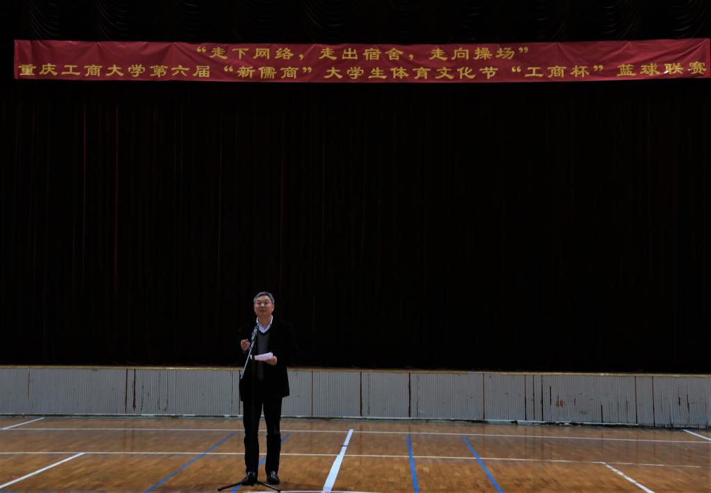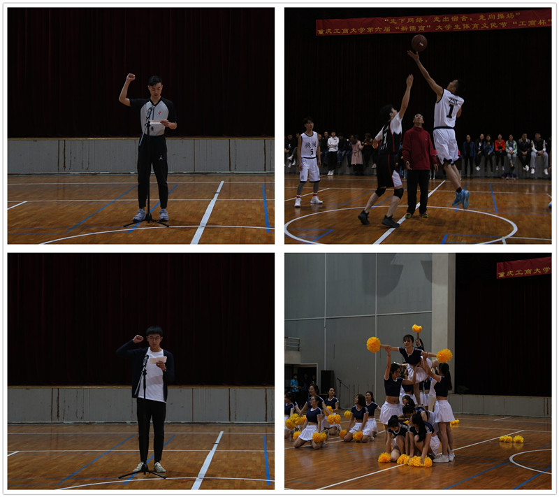3月28日12:30,第六届“新儒商”大学生体育文化节之“工商杯”篮球联赛开幕式在南岸校区体艺馆举行。副校长李国军,校体委办公室主任、体育学院副院长范文杰,校团委副书记杨娟、陆嘉以及各学院分团委书记、运动员和学生代表参加了开幕式。