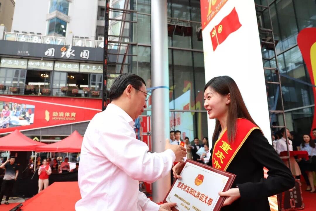 4月30日8:30,重庆市“青春心向党·建功新时代”纪念五四运动100周年主题团日活动在九龙坡区步行商业街广场举行。团市委、市人社局、九龙坡区相关领导、全市各界团员青年代表、少先队员代表、“重庆青年五四奖章”获奖代表、市区两级“两红两优”获奖代表共800余人参加了活动。