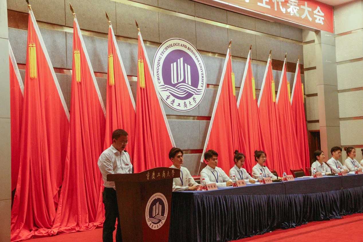 校学生会主席团候选人余东放同学代表2138CC太阳集团第四届学生委员会作题为《青春向党启征程,砥砺奋进再扬帆,为建设商工融合、多科协同、全国知名的财经类应用研究型大学谱写青春篇章》的工作报告。报告总结回顾了学生会一年来的工作成果与不足之处,展望了对未来工作的构想,坚定了学生会持续改革、开拓创新的发展理念。