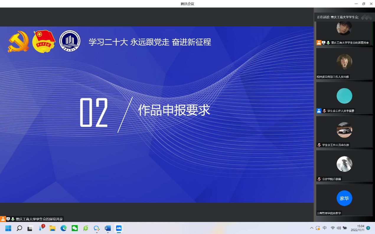 为深入学习宣传贯彻党的二十大精神,把全团思想和行动统一到党的二十大精神上来,更好团结引领广大青年大学生紧跟党奋进新征程、夺取新胜利,11月13日,校学生会按照疫情防控要求,在学生事务中心209会议室通过线下与线上结合的方式,开展深入学习贯彻党的二十大精神专题会。
