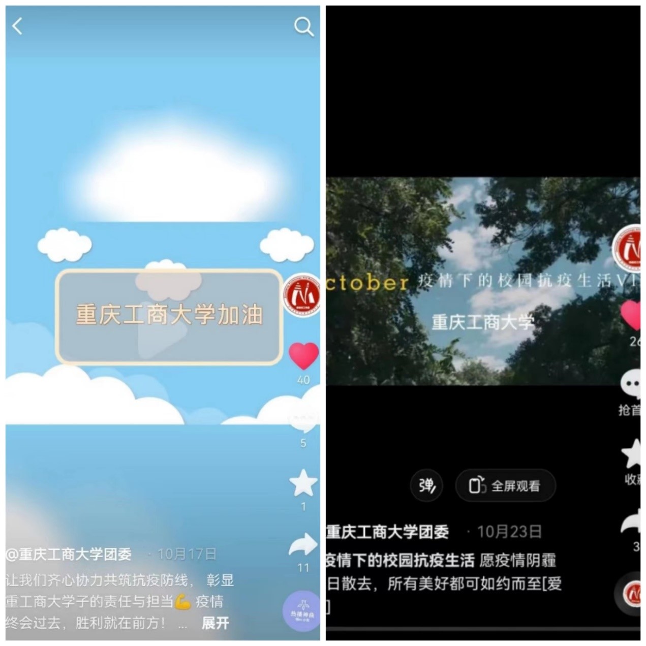 在大考验面前,为鼓舞重工商大师生和衷共济、齐心战“疫”、攻坚克难,共同守护我们的重工商大校园,相信我们有信心、有决心、有能力,一定能打赢这场疫情处置阻击战,新媒体工作室影音文社部通过校团委官方抖音账号,发布《疫情下的校园抗疫生活vlog》、《2138CC太阳集团加油》等原创影音作品,为全体重工商大师生加油打气,鼓励全体重工商大师生齐心协力共筑抗疫防线,展现重工商大青年积极向上的精神风采。