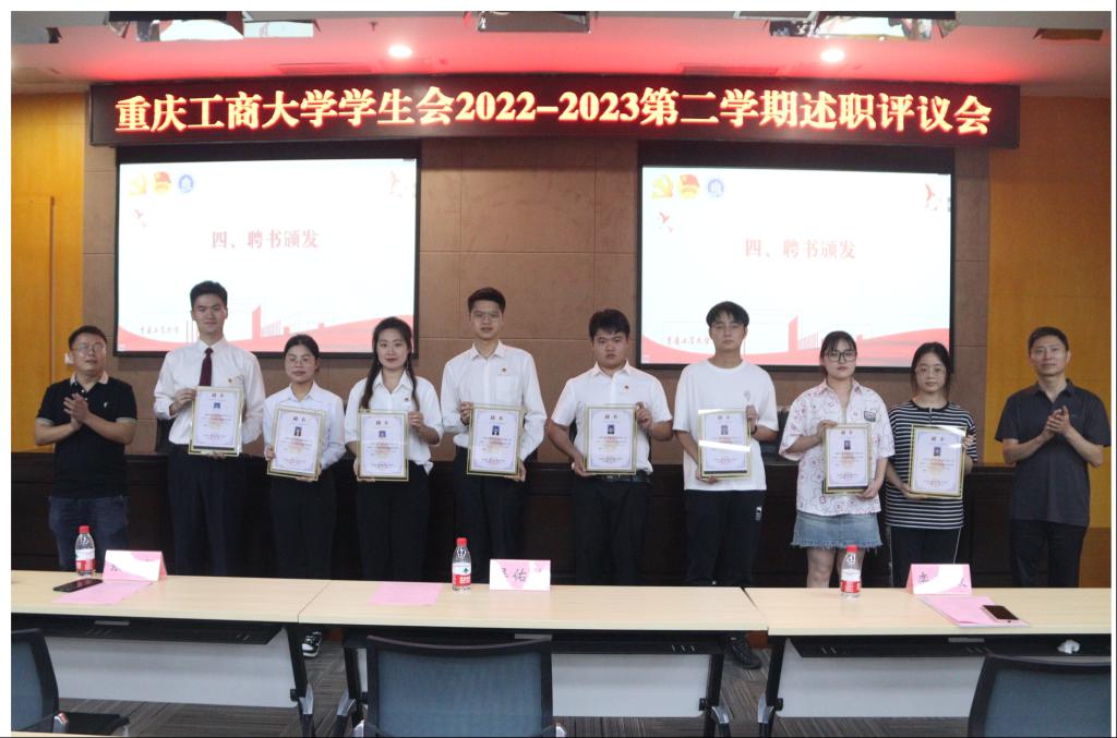 会上,校团委书记吴佑波、党委学工部副部长张朝毅为第二十一届校学生会主席团成员、部门负责人颁发聘书,鼓励学生会骨干永葆理想情怀,勤勉务实做事,发挥先锋作用。学生会述职评议工作的开展进一步推进我校学生会深化改革,对改善学生会工作机制以及提高工作效率奠定良好基础。未来,我校学生会将继续秉持“全心全意为同学服务”的宗旨,在后续工作中不断聚焦主责主业,团结带领广大重工商大青年谱写出更加靓丽的青春之歌,为全面建设社会主义现代化国家贡献青春力量。