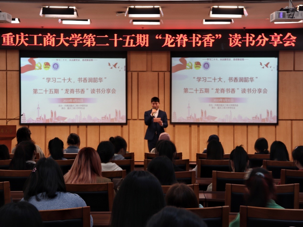 征程万里风正劲,重任千钧再出发。为更好地学习宣传贯彻习近平新时代中国特色社会主义思想,引导学生争做“有理想,敢担当,能吃苦,肯奋斗”的新时代好青年,3月31日,我校第25期“龙脊书香”读书分享会在南岸校区图书馆第一会议室顺利举办,120余名同学参与本次分享会。