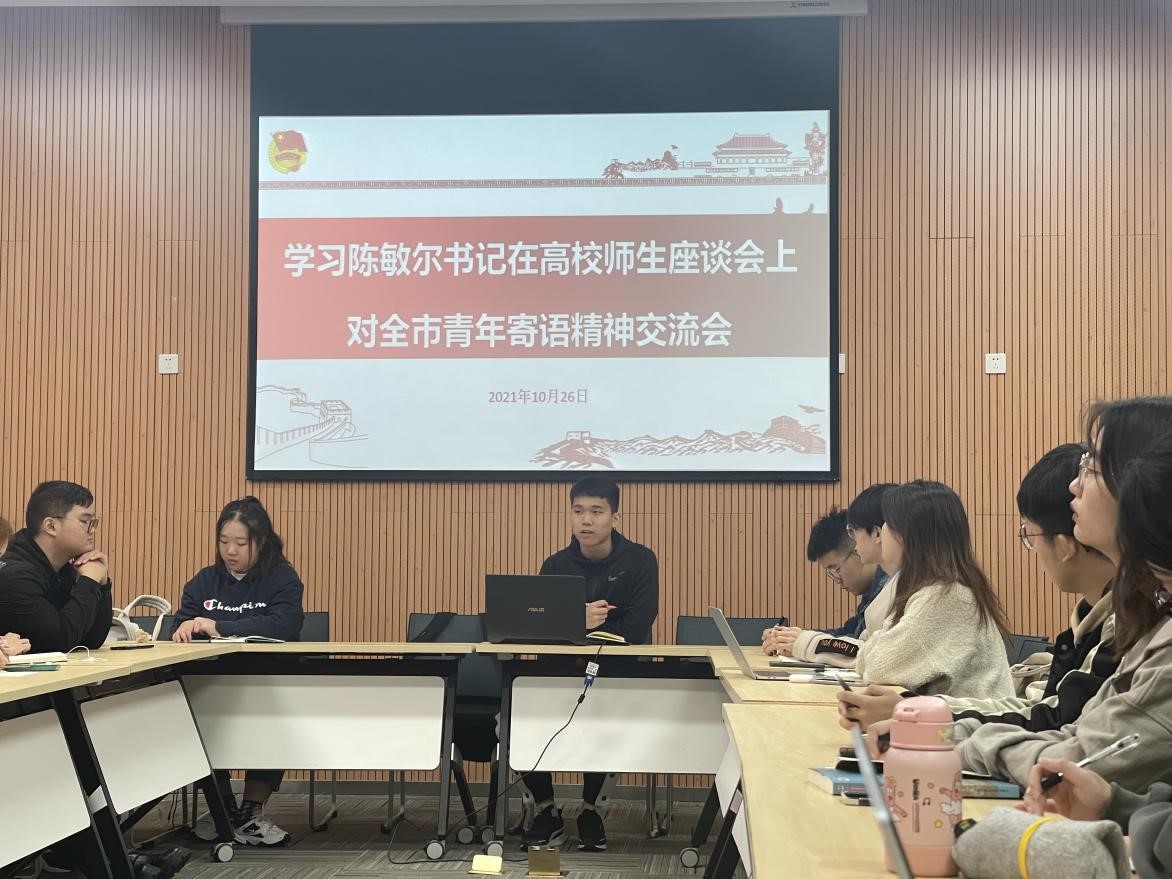 会上,文川组织大家学习陈敏尔书记在高校师生会座谈会上着重讲述的“青年精神”。他提到了当代青年要关注重庆的发展,要致力于重庆的发展,把习近平总书记殷殷嘱托全面落实在重庆大地上这条主线,坚持从全局谋划一域、以一域服务全局。同时他谈到作为青年要立足新发展阶段、贯彻新发展理念、融入新发展格局,奋力谱写重庆高质量发展、高品质生活新篇章。会议最后,与会同学纷纷表示,要深怀爱国之心,做一名听党话、跟党走,在一点一滴的实践中奉献祖国、奉献人民的时代好青年。