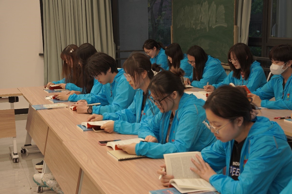 校级培训班在经过各学院推荐、选拔考核后,共计遴选了155名骨干学员。4月,校级青马班将首先进行第一阶段的分小组自学。4月7日至4月26日,全体学员分小组开展了集中学习。学员们共同学习了《党的二十大报告辅导百问》,围绕如何深入学习习近平新时代中国社会主义思想和党的二十大精神进行了交流,就开展党的二十大精神宣讲进行了准备和策划。同时,围绕“如何做好青年大学习?”“如何提升青马工程的实施效果?”“青年工作中存在的困惑和难点?”“如何开展我为同学办实事?”等问题进行了讨论和分析。在第一阶段分小组自学的环节中,每个学员每天开展2小时理论学习,每个小组每周开展1次集中学习,并进行心得体会和读书分享。