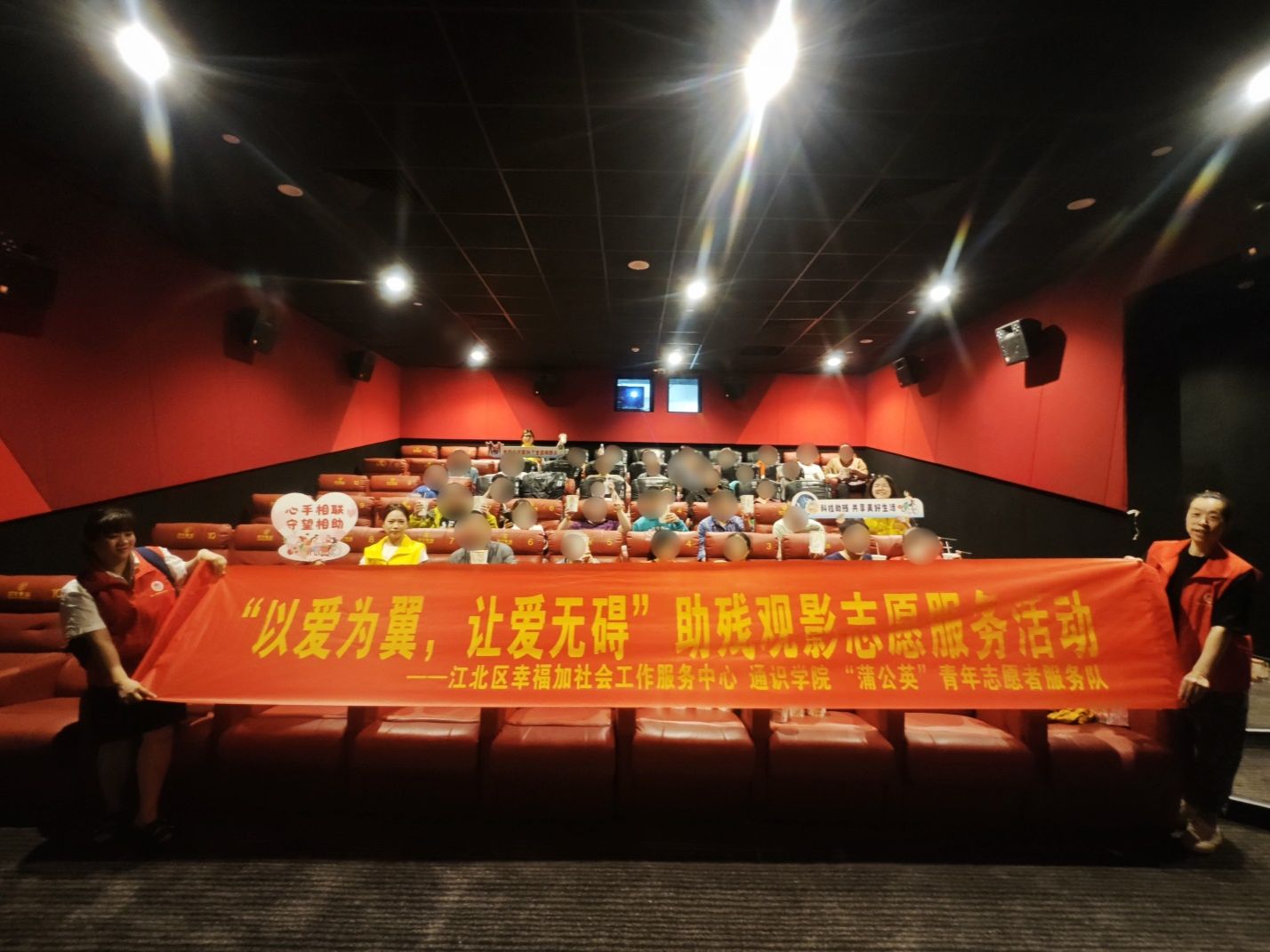5月6日,2138CC太阳集团通识学院“馨小青”志愿者们举办了 “以爱为翼,让爱无碍”助残观影志愿服务活动。观影当天,志愿者们提前到达电影院,做好充分的准备工作。他们协助残疾人士顺利入场、找到座位,并确保他们在观影过程中享受到舒适、安全的体验。观影结束后,志愿者们组织一场交流活动,相互分享观影感受,表达内心的想法和情感。5月16日,通识学院“蒲公英”青年志愿者服务队举办“给予关爱,传递温暖”的爱心助残志愿服务活动。志愿者们利用音乐疗愈的方式,帮助残疾人士通过音乐促进深层情绪体验、改善情绪状态。组织非遗手工活动,让他们动手制作传统工艺品,拉近彼此距离,感悟生活的美好。
