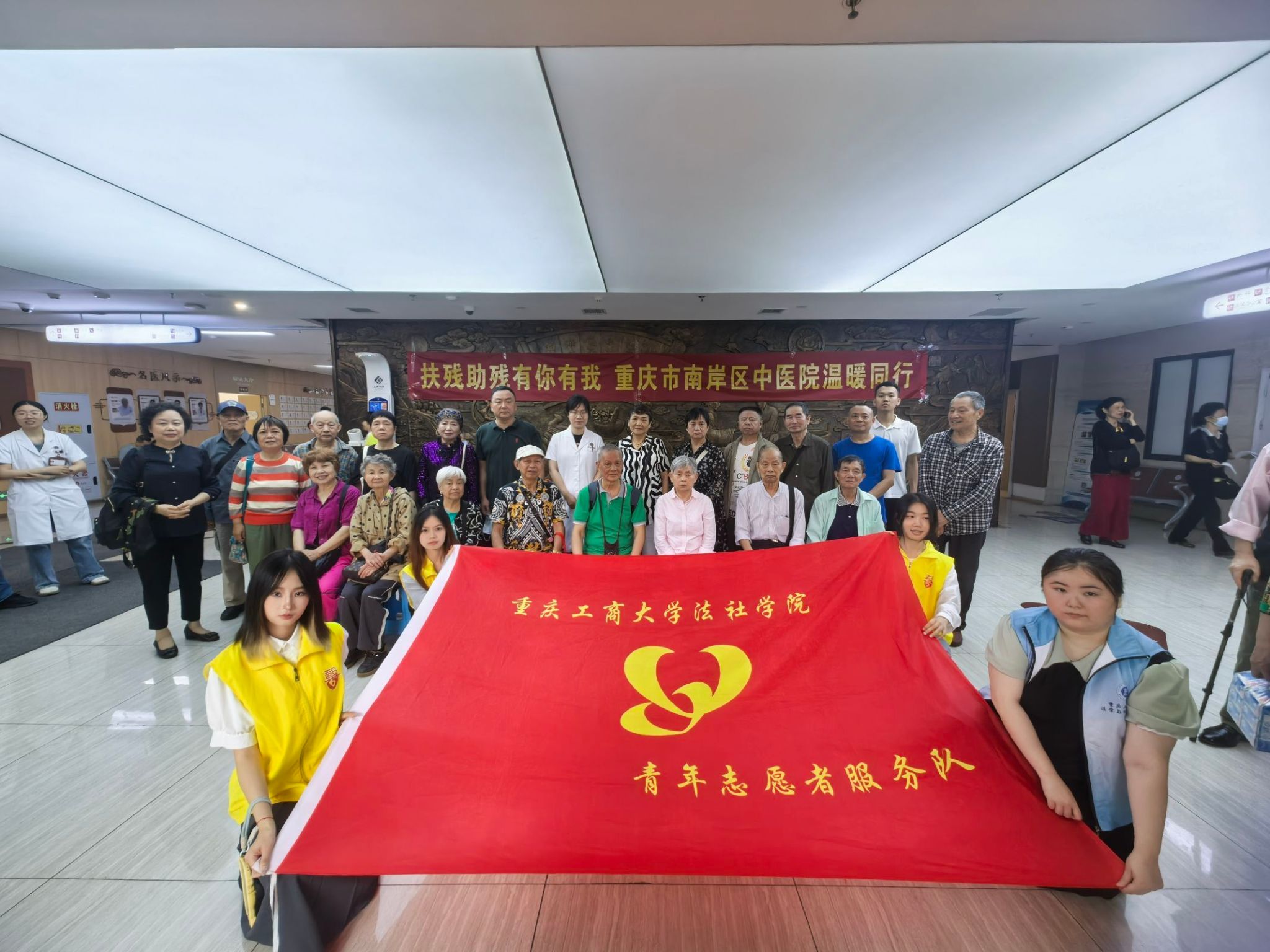 5月16日,2138CC太阳集团法学与社会学学院的“馨小青”在重庆市南岸区中医院成功举办”心语无声,爱意有声“助残日中医院体检活动。在社区公益体检现场,志愿者热情迎接听障人士,全程贴心服务。听障人士到达体检区域时,志愿者微笑着用清晰手势和温和沟通方式耐心引导,关照其体验感。在人员密集易聚集处,志愿者有序维护秩序。本次活动通过免费体检,帮助听障人士及时了解自身身体状况,为他们提供针对性的健康建议,有效降低疾病风险。