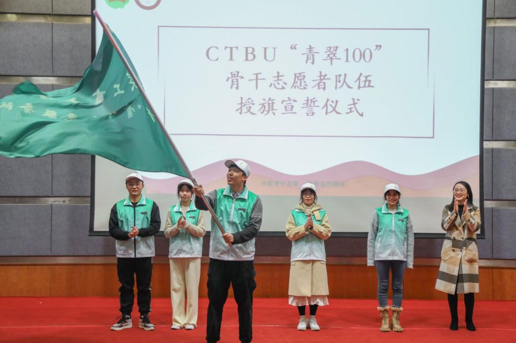 为迎接第36个国际志愿日的到来,12月4日,我校第十四届“新儒商”志愿文化节开幕式暨CTBU“青翠100”骨干志愿者队伍成立大会在7100报告厅举行。校团委副书记胡婧婷、校青年志愿者协会指导老师王微、CTBU“青翠100”骨干志愿者服务队全体成员、校院青年志愿者代表参加活动。