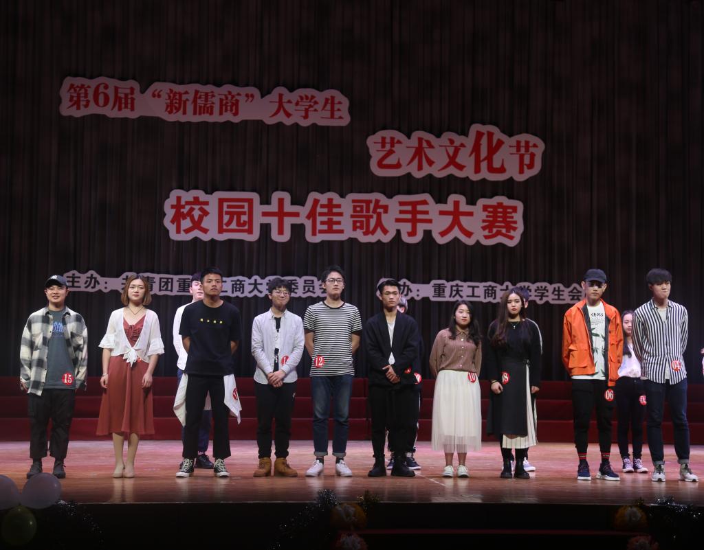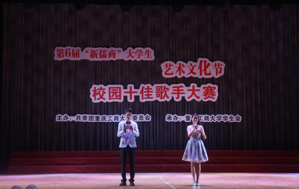 2018年4月8日19:00,由校团委主办,校学生会承办的第六届“新儒商”大学生艺术文化节之校园十佳歌手大赛(踢馆争霸赛)在我校南岸校区体艺馆举行。重庆市樨灵文化传媒有限公司艺术总监王曦林、校团委老师陈琛和王灿担任了本次大赛的评委。