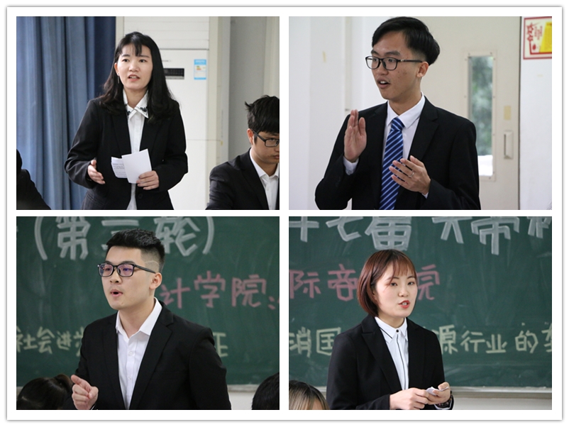 在下半场的比赛中,作为正方的国际商学院、旅游与国土资源管理学院、外语学院分别与作为反方的经济学院、计算机科学与信息工程学院、商务策划学院展开了关于“应该/不应该取消国企在能源行业的垄断地位“的辩论。其中,经济学院站在国家层面提出“取消国企垄断地位不利于大型基础民生建设、民企承担该行业各类建设的动力不足”等观点,据理力争,举例法国电力公司并将能源行业类比化工行业,表达了自己的对该问题的见解。
