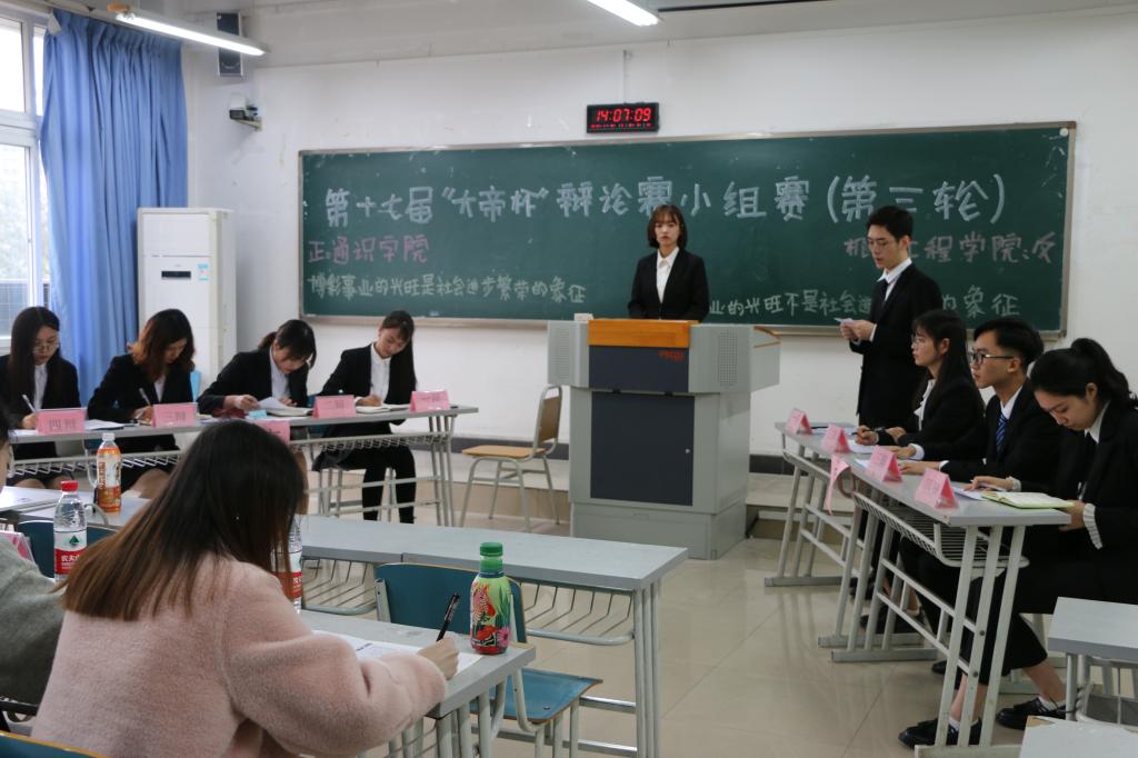 11月16日14:00,由校团委主办、校学生会承办的第十七届“大帝杯”辩论赛小组赛(第三轮)于江北校区宏智楼303、304、305教室正式拉开帷幕。往届优秀辩手担任本次比赛评委。